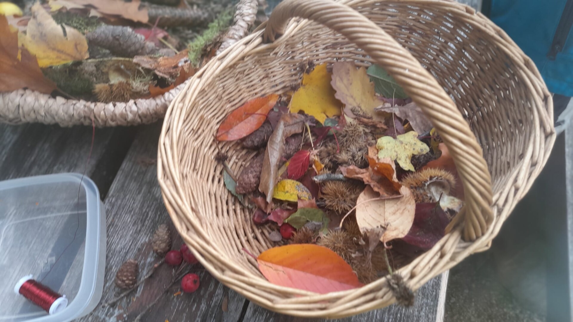 Auf dem Weg zum Goldenen Kopf wurden gemeinsam Blätter und Waldfrüchte gesammelt.