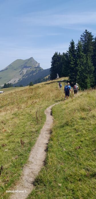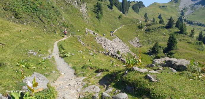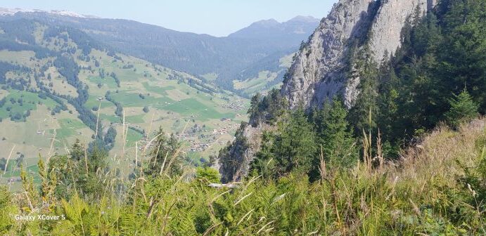 Am letzten Tag und Abschluß der Alpenwanderung ging es auf den Harder Kulm. Von Interlaken Ost ging es mit der Harderbahn zum Kulm(1350 m). Auf der Aussichtsplattform der tiefe Blick hinunter zu den beiden Seen und Eiger, Mönch und Jungfrau waren zum Greifen nah. Der Wanderpfad auf dem Hardergrat zum Augstmatthorn erwies sich als nicht leicht begehbar. Trittsicherheit und konzentriertes Gehen waren erforderlich sodass man das Ziel Augstmatthorn abbrach und steil nach Habkern hinunter wanderte. In diesem schönen Dorf und Seitental war noch genügend Zeit für eine Einkehr bevor der Postbus die Bergwanderer zurück nach Interlaken brachte.