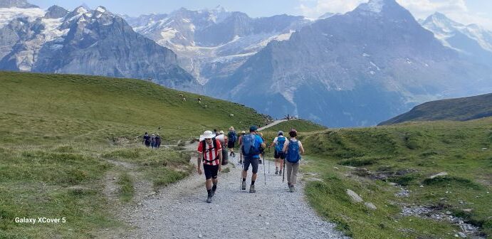 Ein Höhepunkt im Programm des SwV Elzach-Winden war die Alpenwanderung im Berner Oberland. Wanderführer Hans Maier hatte dazu vier alpine Touren in der Region Eiger, Mönch, Jungfrau ausgewählt an denen 16 Wanderfreunde teilnahmen. Mit Zug und Bus fuhren sie nach Grindelwald um in einer Jugendherberge zu übernachten. Insgesamt legte man auf vier Touren 50,8 km zurück und bewältigen 2460 Höhenmeter. 20,5 Stunden waren die Teilnehmer auf oft sehr steilen, felsigen Pfaden unterwegs. Für ihre Strapazen entlohnte sie die imposante Bergwelt, bei herrlichsten Wetter über alle Tage, mit bleibenden Eindrücken.